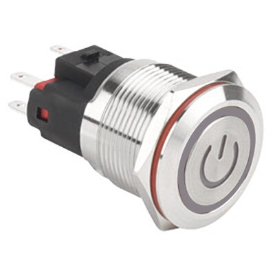 22E-P1Z-EC 22mm Düz Anahtarlı Işıklı Power Metal Buton - Beyaz