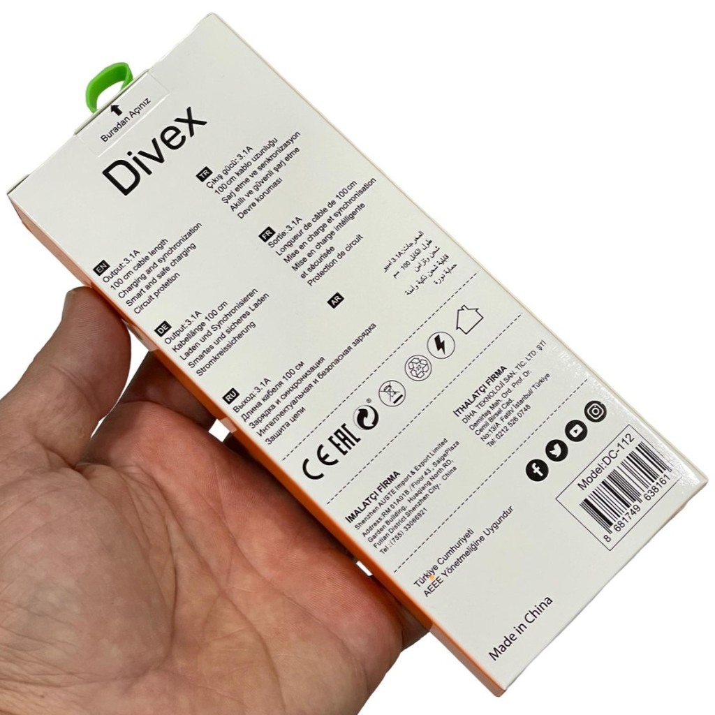 Divex 3.1A Type-C Hızlı Şarj Data Kablosu 1m DC-112