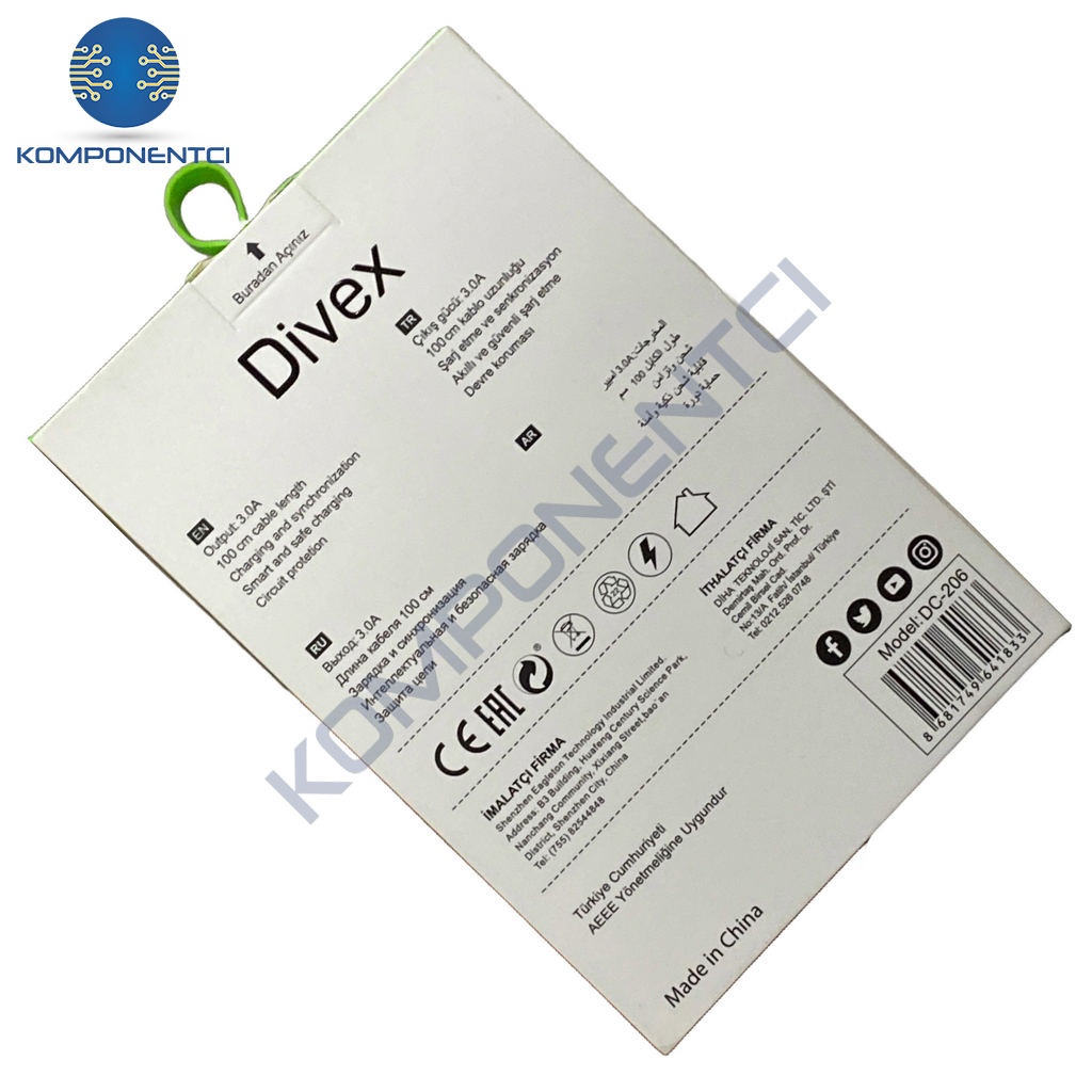 Divex 60W Yüksek Hızlı Type-C (USB-C) Şarj ve Data Kablosu DC-206