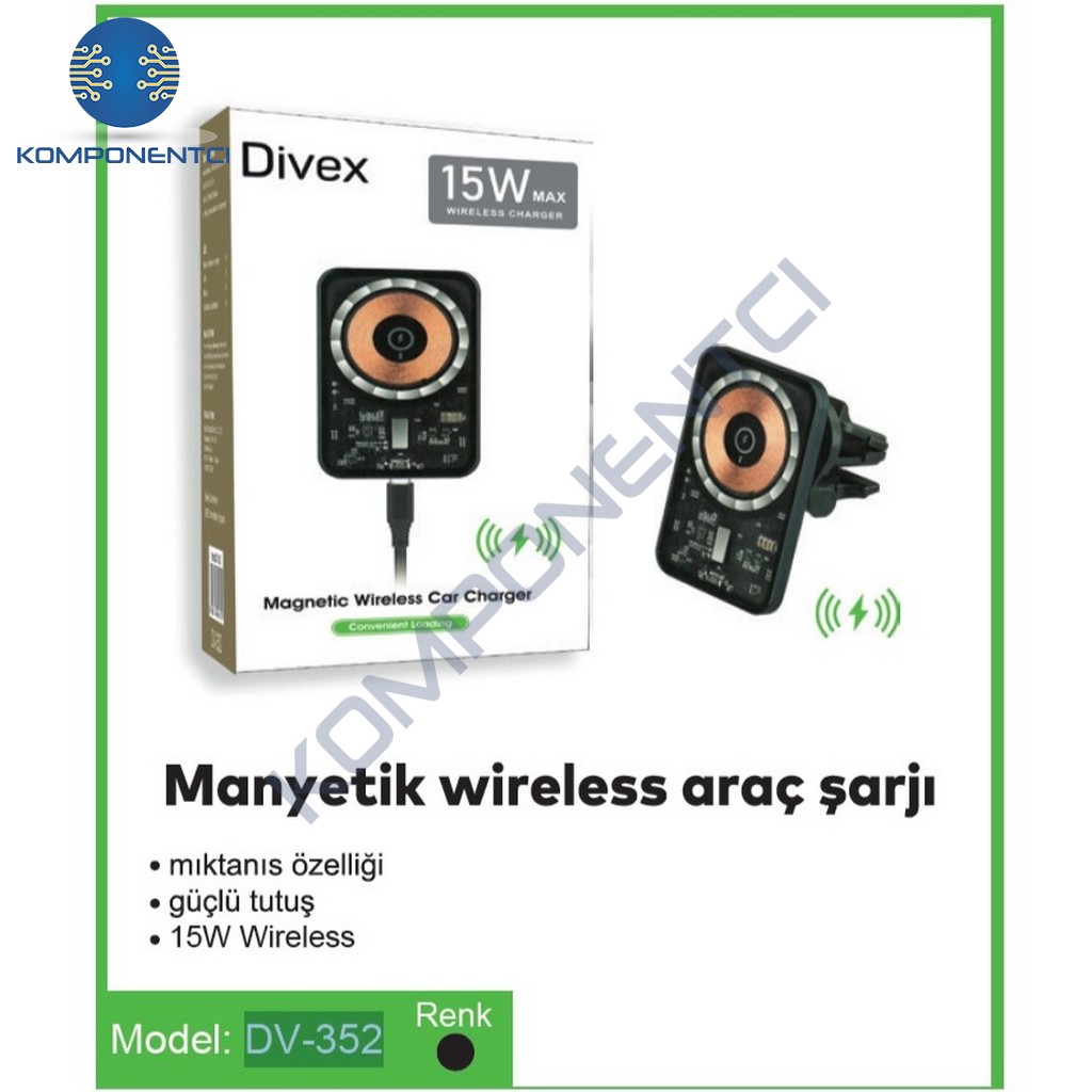 Divex Kablosuz Araç Şarj Cihazı Manyetik Wireless Şarj Aleti DV-352