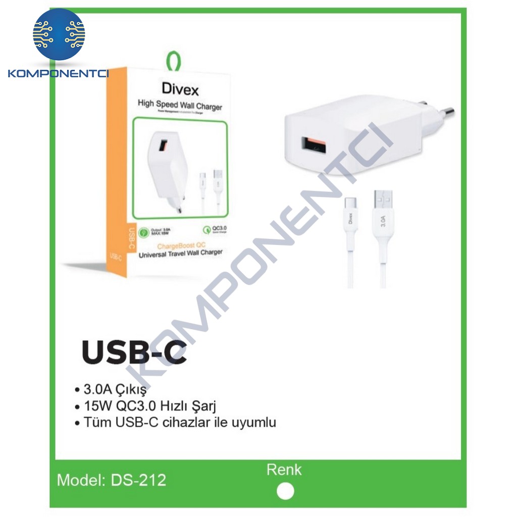 1 adet Type-C USB Kablo - Adaptör 3.0A Ev Tipi Şarj Aleti