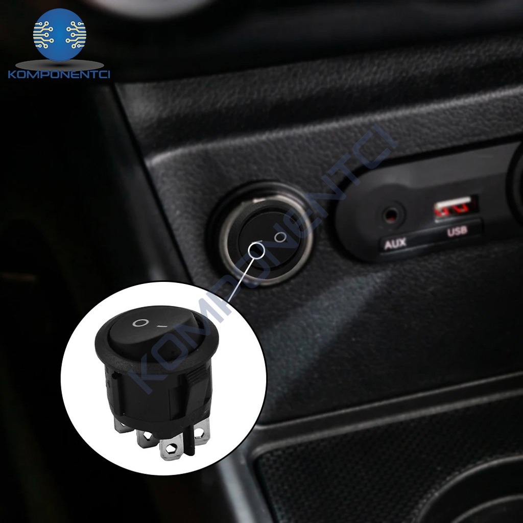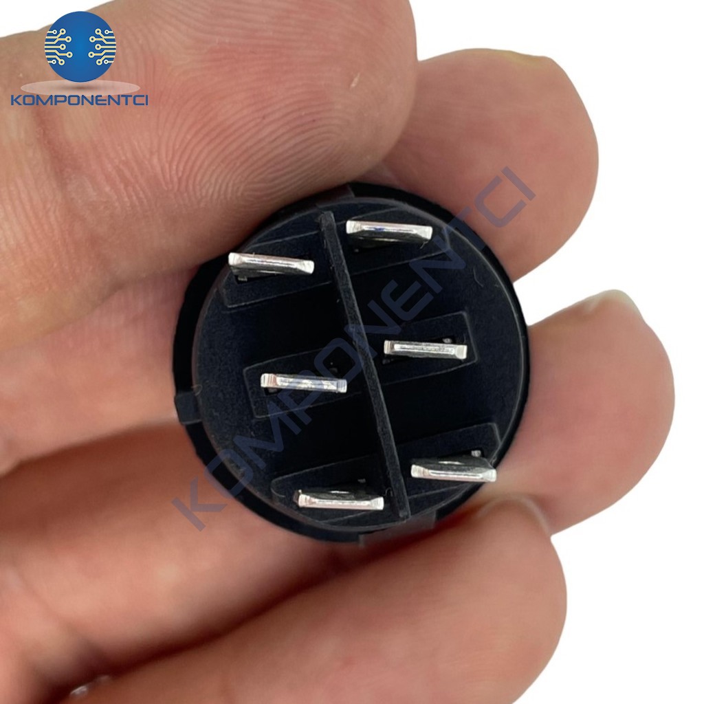 Bu ürün, elektronik cihazlarda kullanılan yuvarlak bir anahtardır ve ON-OFF (Açık-Kapalı) işlevine sahiptir. Siyah renkteki gövdesiyle dikkat çeker. 6 terminal bağlantısına sahiptir ve genellikle çeşitli elektrik devrelerinde kontrol amacıyla kullanılır.
