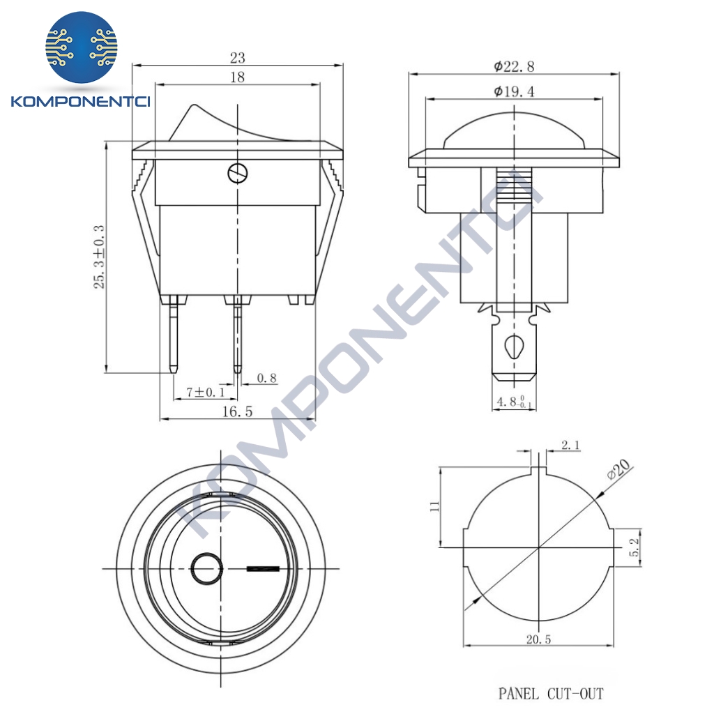 1 adet IC-133 Yuvarlak Işıksız Devre Anahtarı On-Off 2P