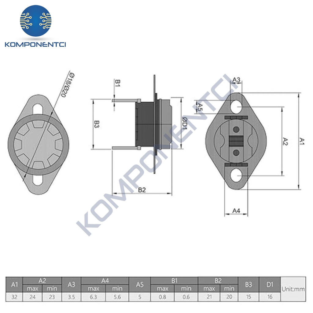 IC-269 NK (Normalde Kapalı) (A) 130°C KSD301 Bi Metal Termostat Kontak Plastik