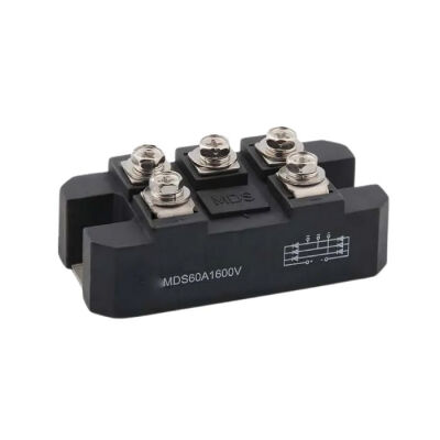 MDS60-16 60A 1600V 3 Faz Köprü Diyot, 60A\'ya kadar yük ve 1600V\'a kadar olan DC ve AC devrelerinde kullanılır. Diyot köprüleri, cihazın mevcut ekipmana kolayca entegre edilmesini sağlayan standart bir endüstriyel kasada yer alır. Devrenin "~" girişine alternatif akım verilir. 80x39x25mm boyutlarındadır.