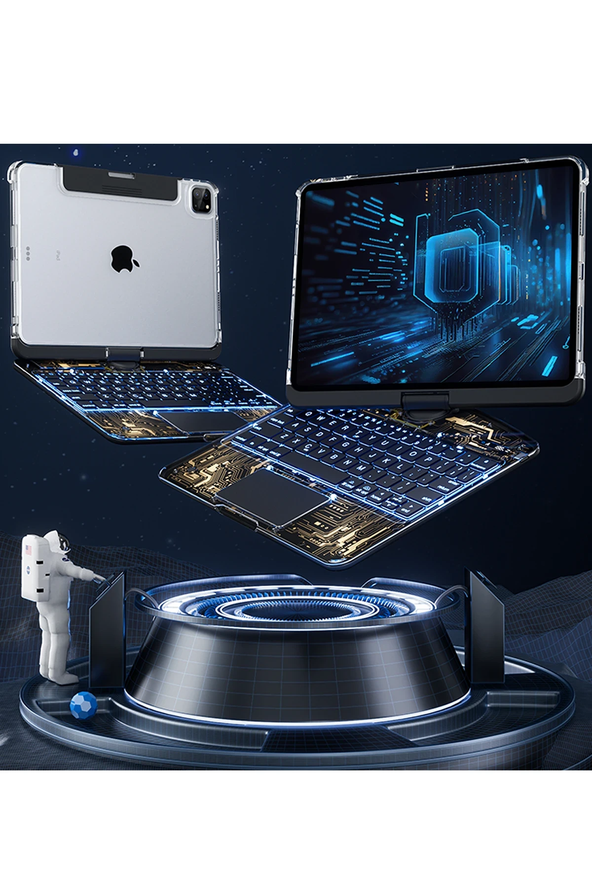 Gelişmiş esneklik, ister iş ister eğlence için mükemmel görüntüleme açıları sağlar. 180° ve 360° döner tasarımı sayesinde kılıf, stand olarak kullanılabilir veya tamamen kapanarak bir koruyucu kılıf görevi görebilir.Açıkken klavye modu, kapalıyken koruma modu ve dönerken stand modu arasında kolay geçiş yapabilirsiniz.