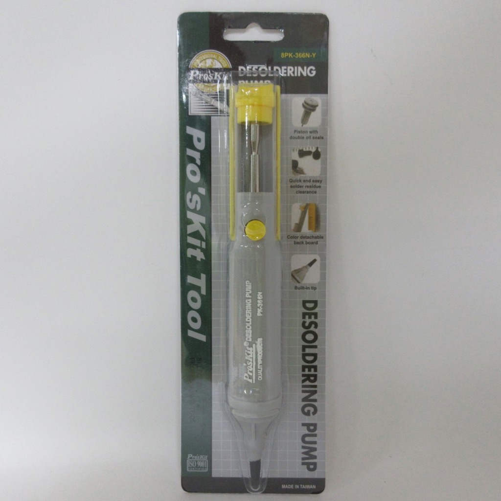 Proskit 8PK-366N-Y Sarı Lehim Pompası, lehimleme işlemleri sırasında kullanılan, yüksek performanslı bir lehim temizleme aracıdır. Sarı rengi ve dayanıklı yapısıyla dikkat çeken bu pompa, lehimlerin etkili bir şekilde sökülmesini ve temizlenmesini sağlar. Özellikle hassas elektronik onarımlar ve bileşen montajları için idealdir.