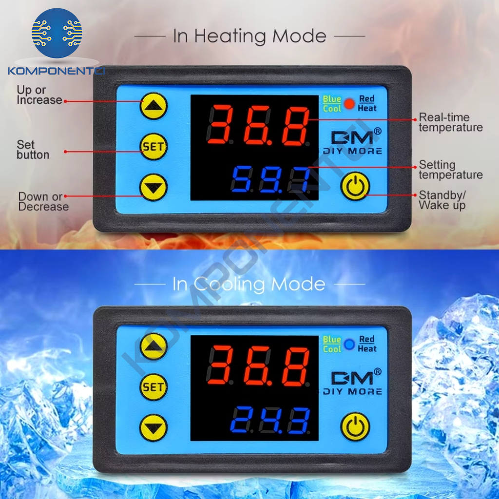 W3231, 220V AC besleme ile çalışan, sıcaklık kontrolü yapabilen ve uzaktan kumanda edilebilen bir dijital termostat modülüdür. Hem ısıtma hem de soğutma modlarında çalışabilir ve sıcaklık ayarlamalarını hassas şekilde yaparak çeşitli uygulamalarda kullanılabilir. Üzerindeki röle çıkışı, bağlı yükleri (ısıtıcı, soğutucu, fan vb.) doğrudan kontrol edebilir.